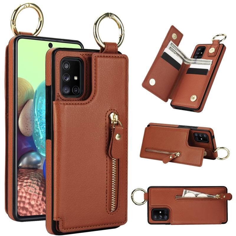 Για Samsung Galaxy A71 5G Litchi υφή φερμουάρ διπλή πόρπη κάρτα τσάντα υπόθεση τηλεφώνου (καφέ)