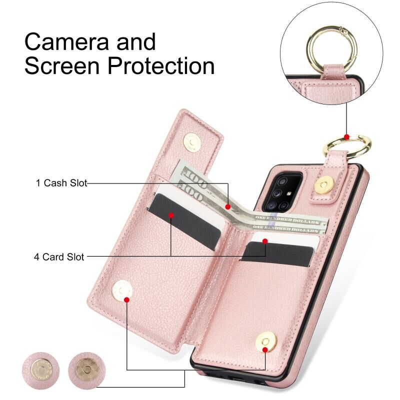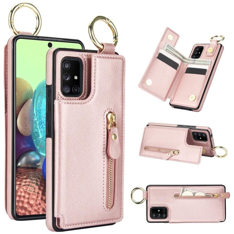Για Samsung Galaxy A71 5G Litchi υφή φερμουάρ διπλή πόρπη κάρτα τσάντα υπόθεση τηλεφώνου (Rose Gold)