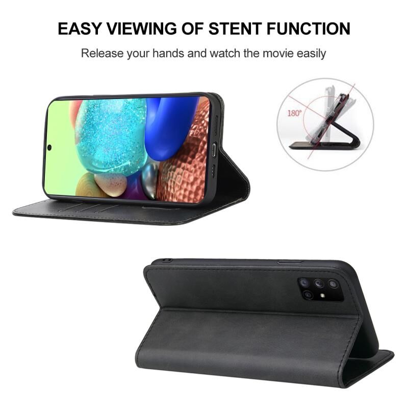 Για Samsung Galaxy A71 5G Μαγνητικό κλείσιμο δερμάτινη θήκη τηλεφώνου(Μαύρο)