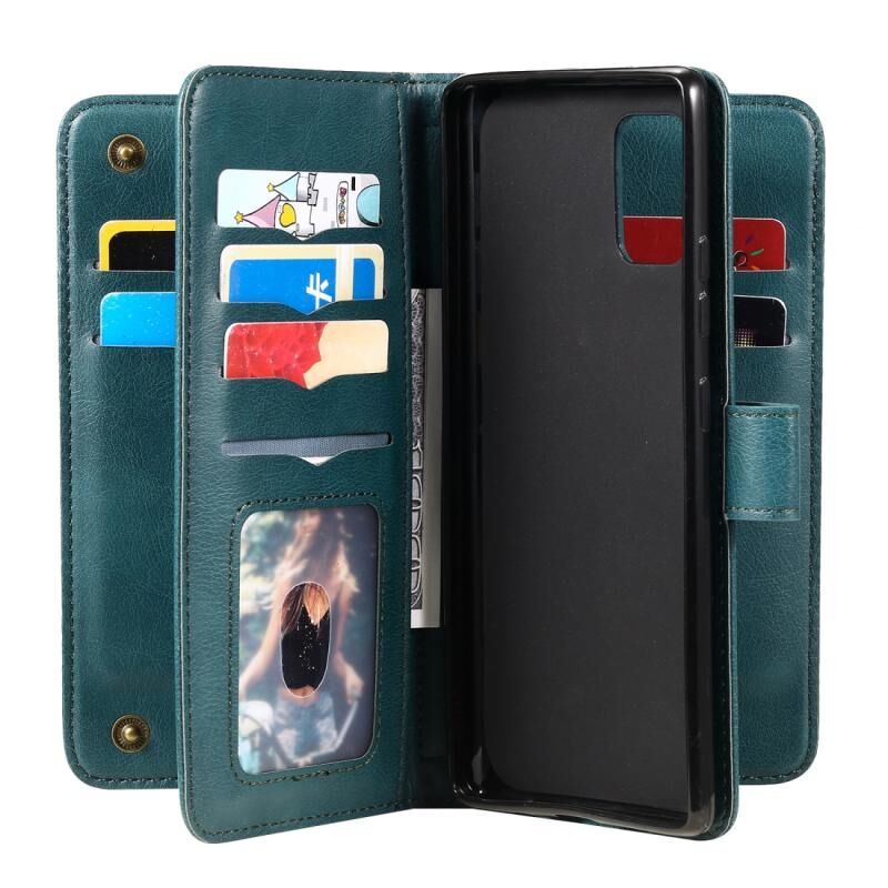 Για Samsung Galaxy A71 (5G) Πολυλειτουργική μαγνητική χάλκινη πόρπη οριζόντια Flip Solid Color δερμάτινη θήκη με 10 υποδοχές για κάρτες & πορτοφόλι & θήκη & κορνίζα φωτογραφιών (σκούρο πράσινο)
