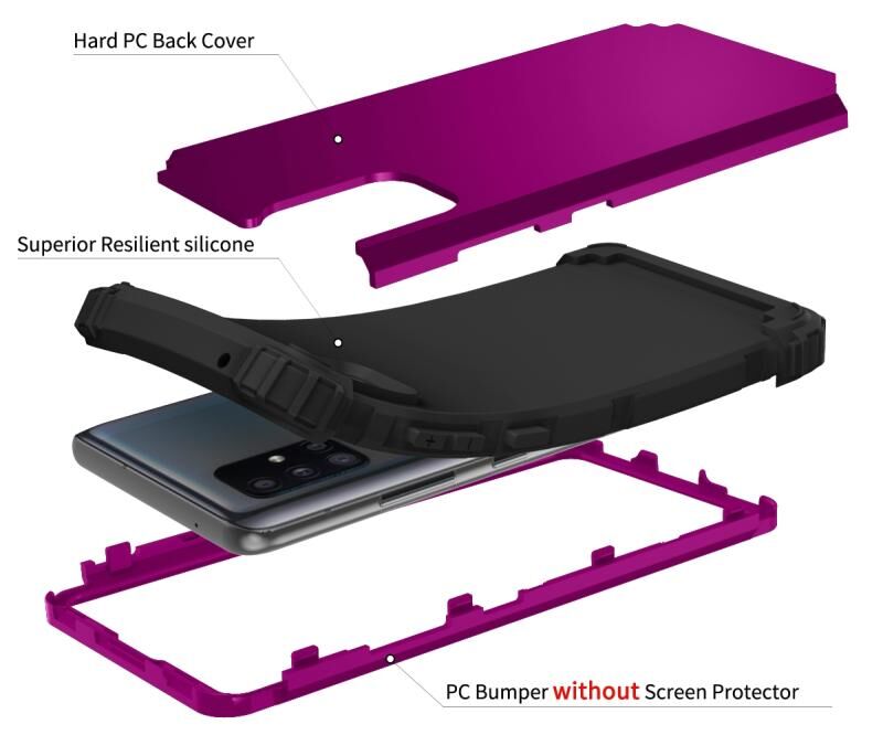 Για Samsung Galaxy A71 5G PC + σιλικόνη Τρία τεμάχια θήκη προστασίας από τους κραδασμούς (μωβ)
