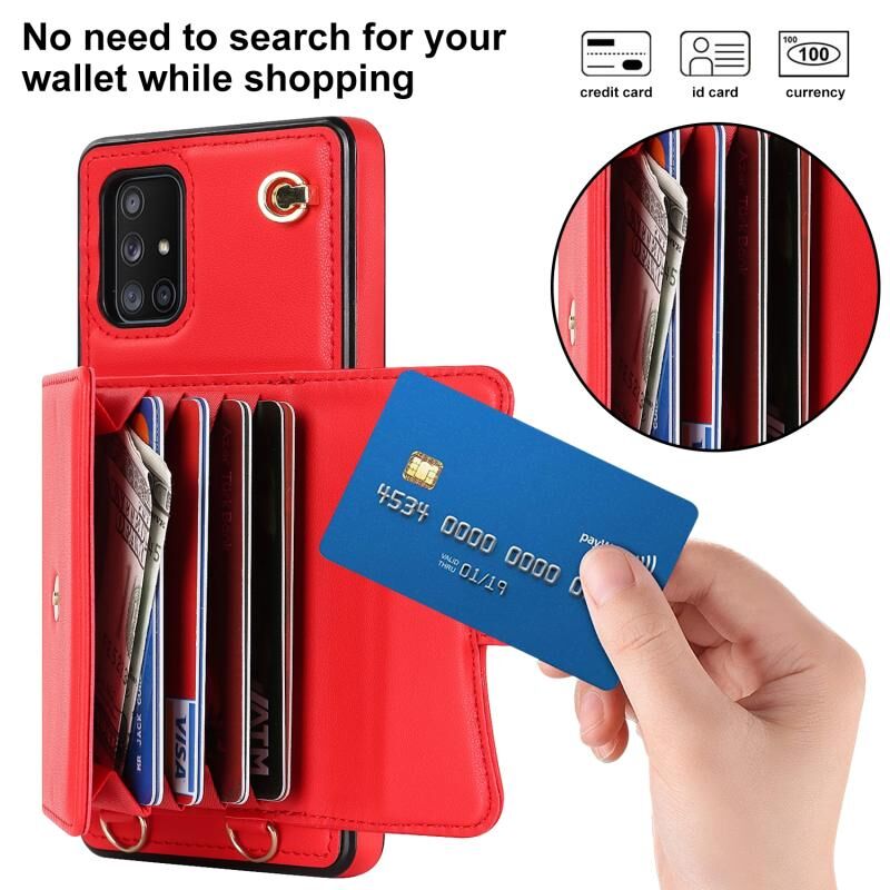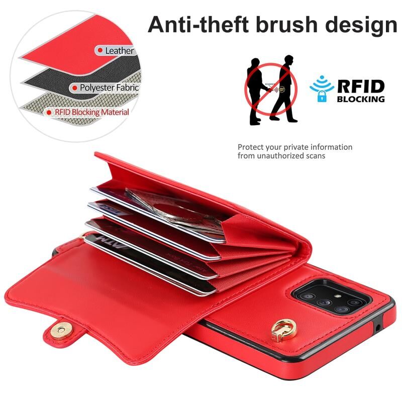 Για Samsung Galaxy A71 5G RFID Slot κάρτα δερμάτινη θήκη τηλεφώνου με μακρύ κορδόνι(Κόκκινο)