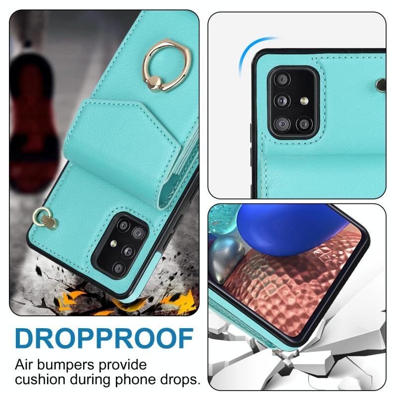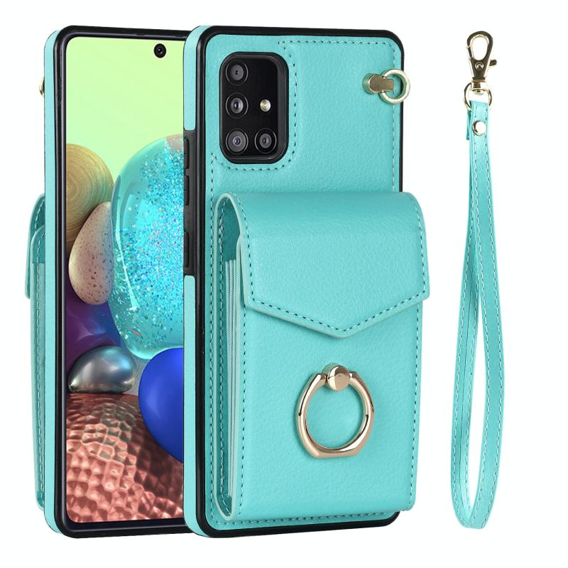 Θήκη κινητού τηλεφώνου με δακτύλιο και θήκη καρτών RFID για Samsung Galaxy A71 5G (Μέντας πράσινο)