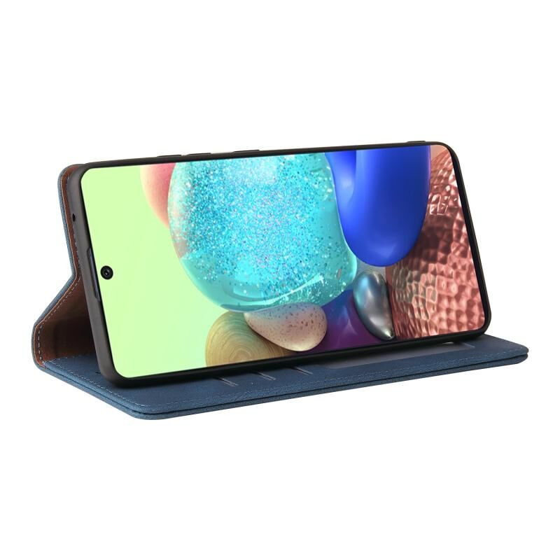 Για το Samsung Galaxy A71 5G Απλό κλείσιμο αναρρόφησης Οριζόντια Flip δερμάτινη θήκη με θήκη & υποδοχή για κάρτες & πορτοφόλι (μπλε)