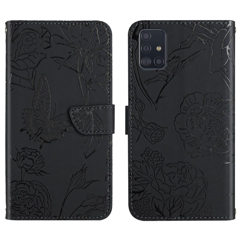 Θήκη τηλεφώνου Samsung Galaxy A71 5G με δερμάτινη υφή, ανάγλυφο σχέδιο πεταλούδας και παιώνιας (Κόκκινο)