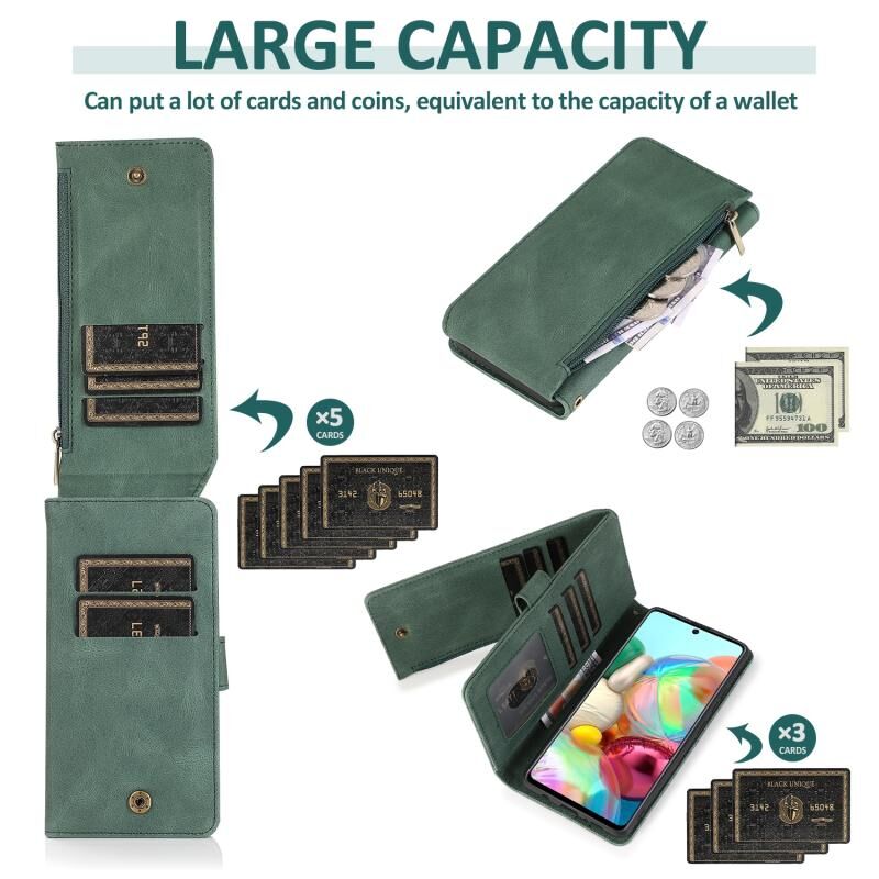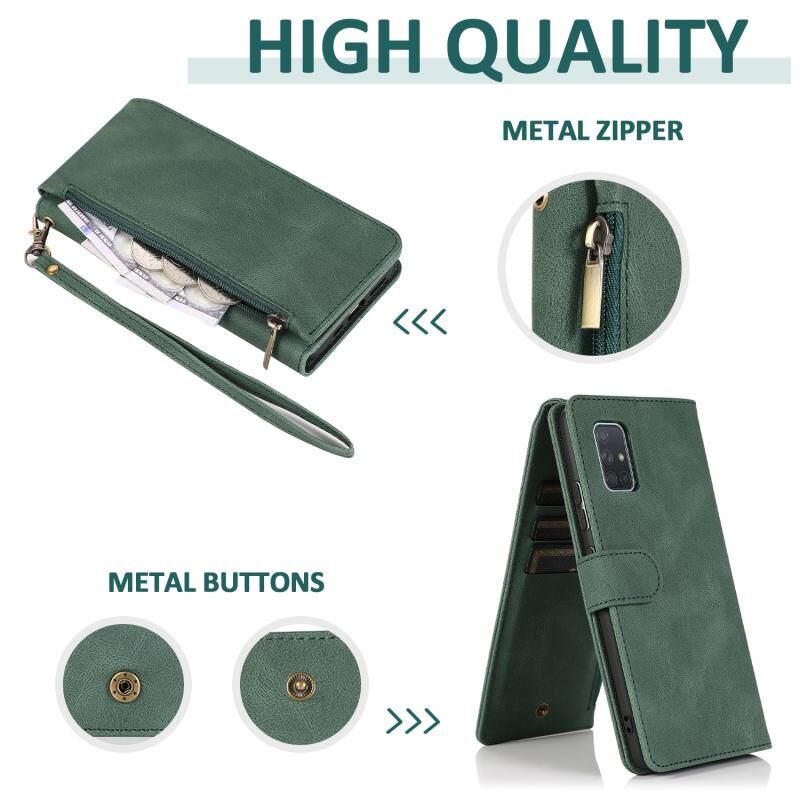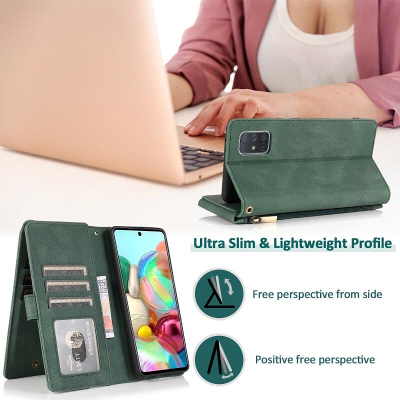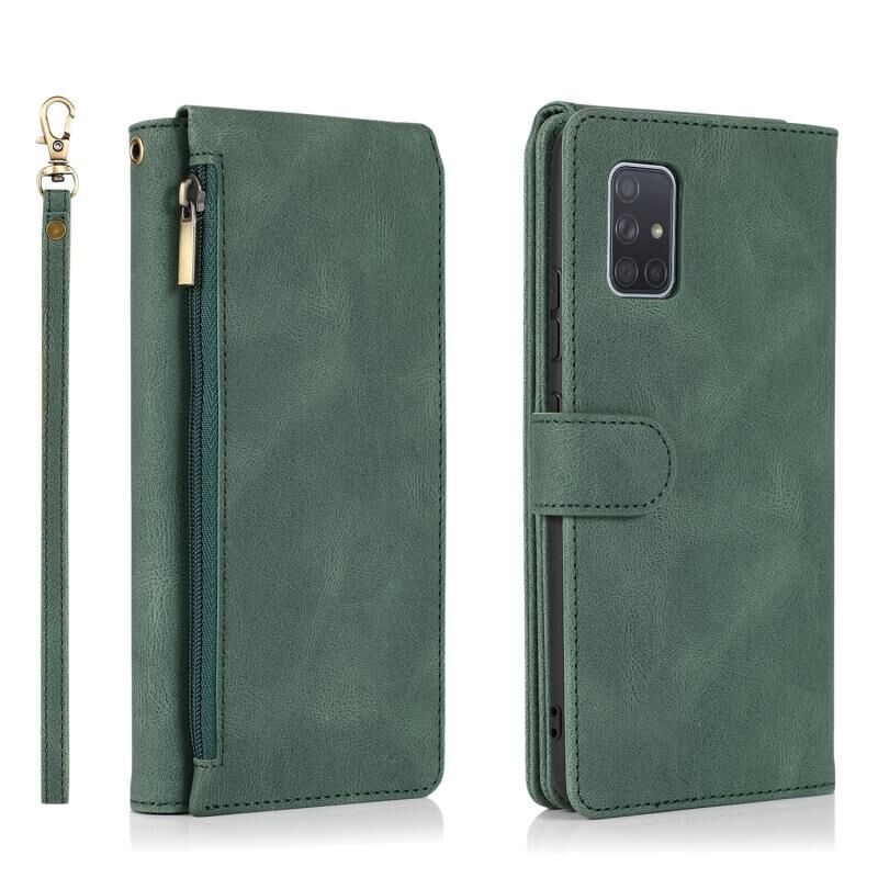 Για Samsung Galaxy A71 5G Skin-feel Crazy Horse υφή φερμουάρ τσάντα πορτοφόλι οριζόντια Flip δερμάτινη θήκη με κάτοχο & υποδοχές για κάρτες & πορτοφόλι & Lanyard (Σκούρο πράσινο)