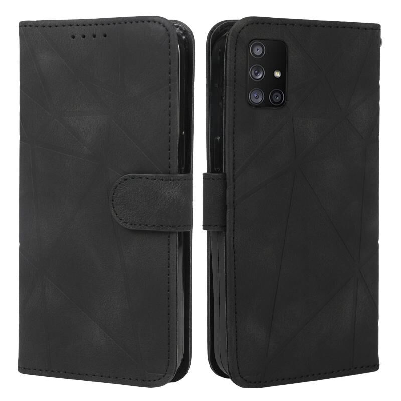 Θήκη τηλεφώνου Samsung Galaxy A71 5G με υφή δέρματος και γεωμετρικά σχέδια (Μαύρο)