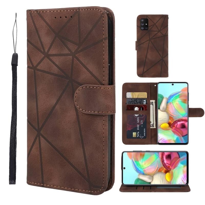 Θήκη τηλεφώνου Samsung Galaxy A71 5G με υφή δέρματος και γεωμετρικά σχέδια (Μαύρο)