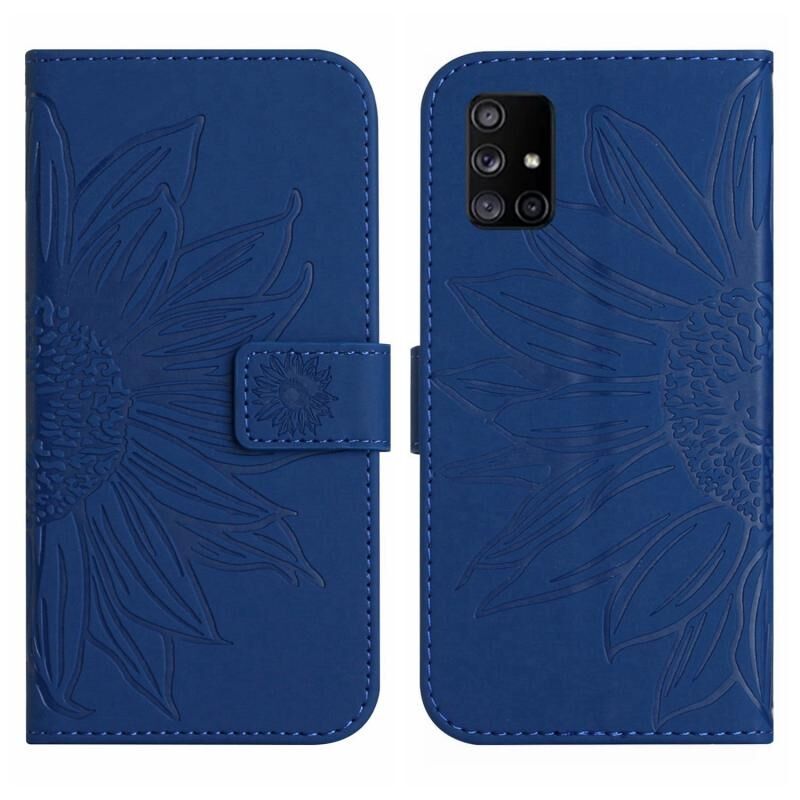 Για το Samsung Galaxy A71 5G δέρμα αίσθηση Sun Flower μοτίβο Flip δέρμα τηλέφωνο υπόθεση με κορδόνι (σκούρο μπλε)