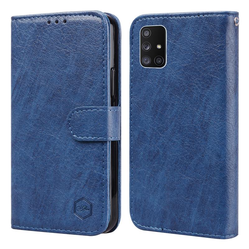 For Samsung Galaxy A71 5G Skin Feeling Oil Leather Texture PU + TPU Phone Case(Dark Blue)