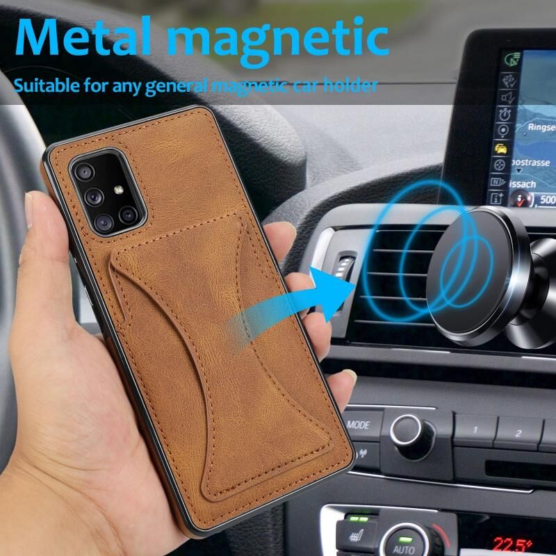 Θήκη προστασίας για Samsung Galaxy A71 5G, εξαιρετικά λεπτή, αντικραδασμική με βάση στήριξης & μεταλλική μαγνητική λειτουργία (Καφέ)