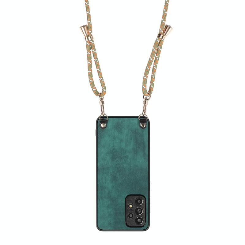 Για Samsung Galaxy A71 5G εκλεκτής ποιότητας δέρμα PC πίσω κάλυψη υπόθεση τηλεφώνου με λουράκι σταυρού (πράσινο)