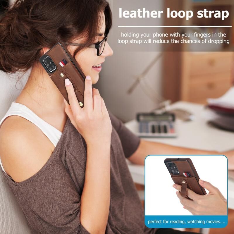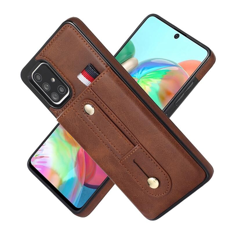 Για Samsung Galaxy A71 5G Wristband Kickstand πορτοφόλι δερμάτινη θήκη τηλεφώνου (καφέ)