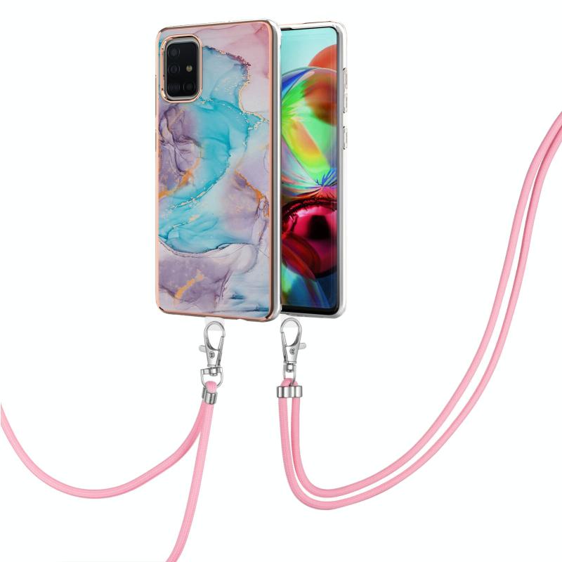 For Samsung Galaxy A71 / A715 Electroplating Pattern IMD TPU Shockproof Case with Neck Lanyard(Milky Way Blue Marble)