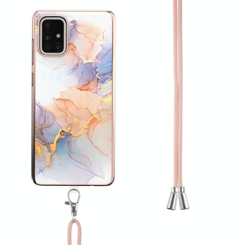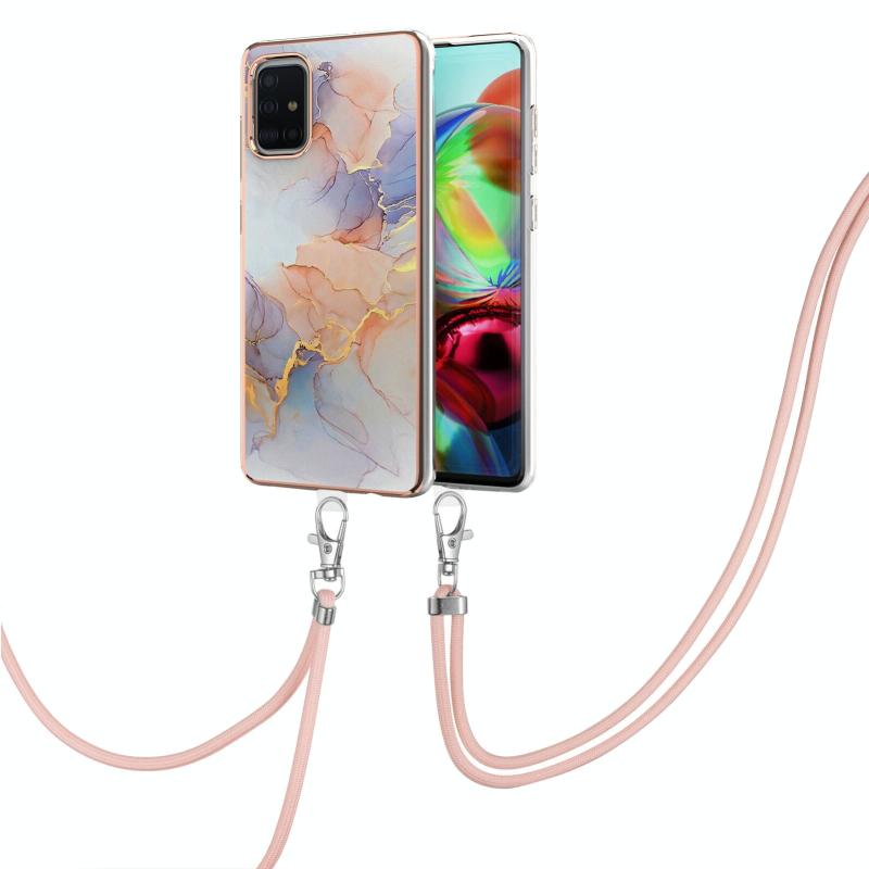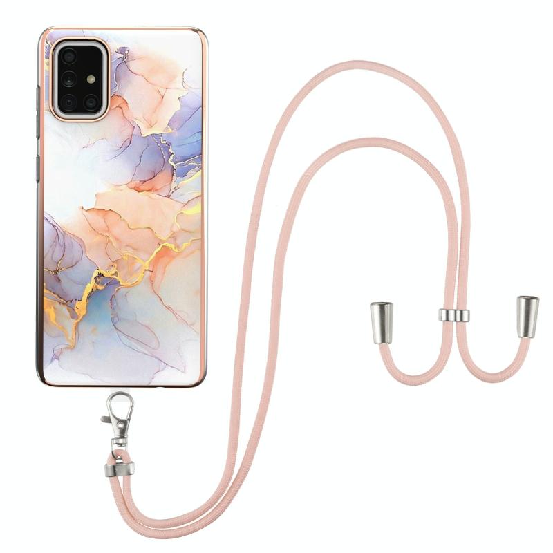 For Samsung Galaxy A71 / A715 Electroplating Pattern IMD TPU Shockproof Case with Neck Lanyard(Milky Way White Marble)