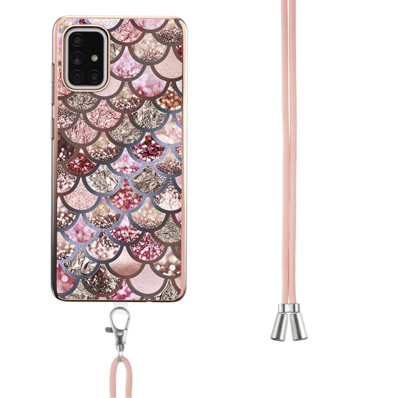 For Samsung Galaxy A71 / A715 Electroplating Pattern IMD TPU Shockproof Case with Neck Lanyard(Pink Scales)