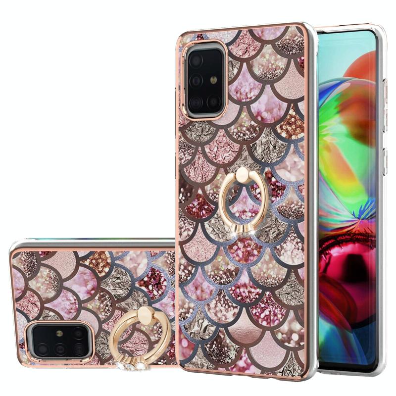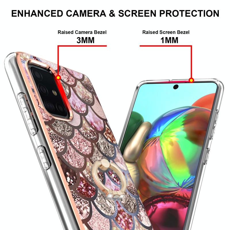 Θήκη προστασίας για Samsung Galaxy A71/A715 με σχέδιο επιμετάλλωσης IMD, από TPU ανθεκτικό σε κρούσεις με δαχτυλίδι στήριξης και ρητίνες (Μωβ Λουλούδι)