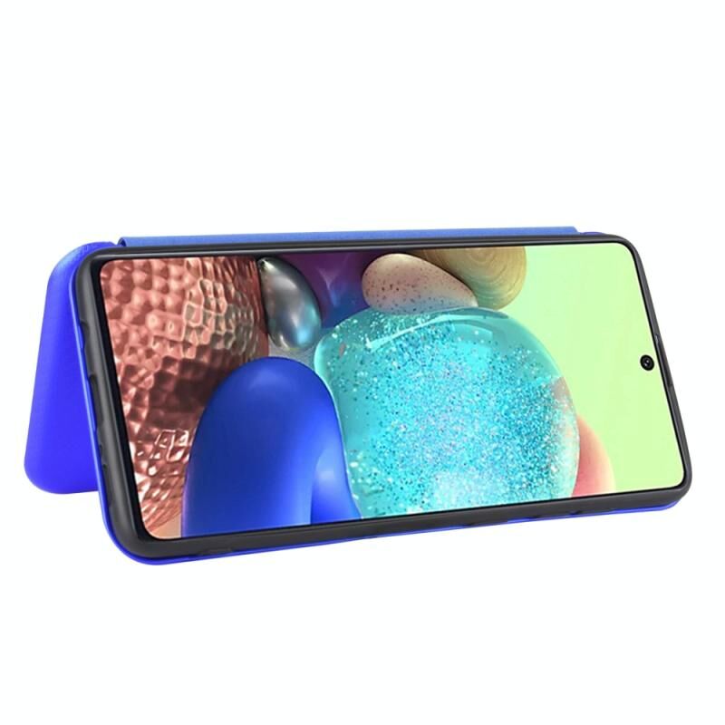 Θήκη για Samsung Galaxy A71 με υφή ανθρακονημάτων, οριζόντια, από TPU + PC + Δερματίνη PU με κορδόνι & θήκη για κάρτες (Μπλε)