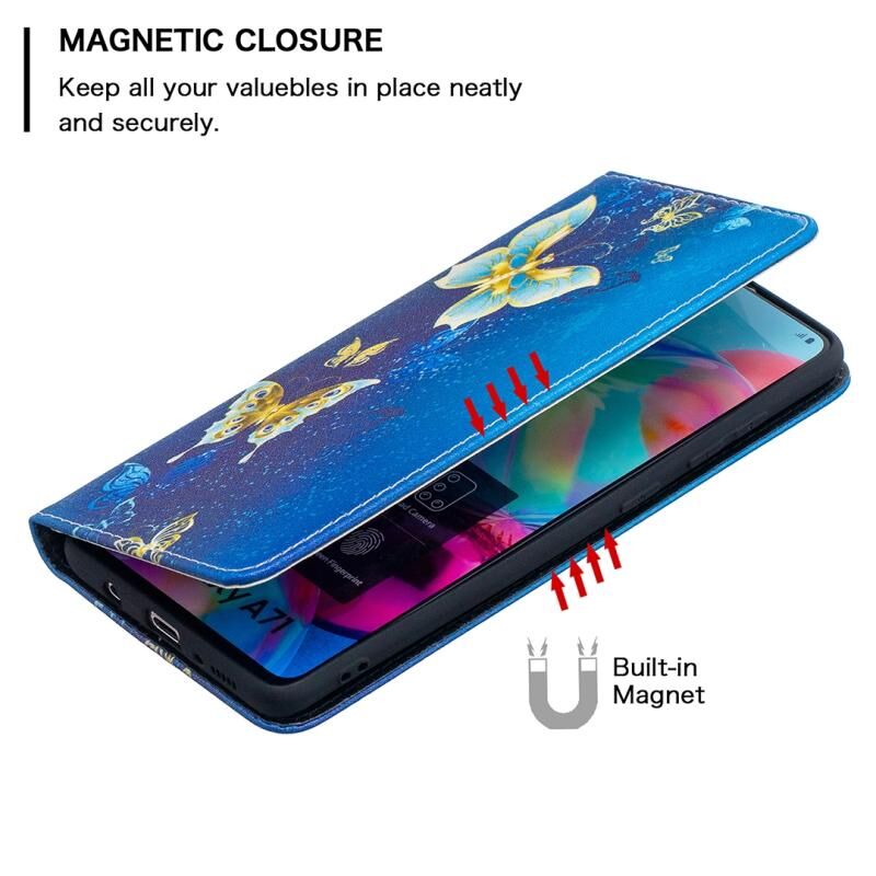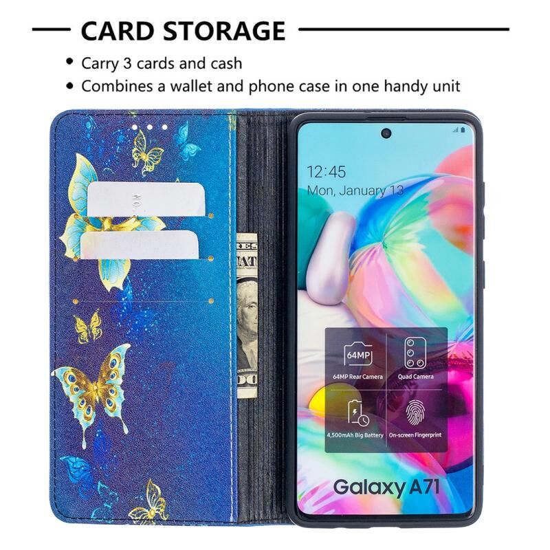 Θήκη Samsung Galaxy A71 με πολύχρωμο σχέδιο, αόρατο μαγνητικό, οριζόντιο flip από δερματίνη PU με βάση & υποδοχές καρτών & πορτοφόλι (Κόκκινο)