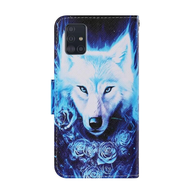 Θήκη Samsung Galaxy A71 με πολύχρωμο σχέδιο, οριζόντια αναδιπλούμενη από δερματίνη PU με βάση στήριξης, θήκες για κάρτες, πορτοφόλι & λουρί (Ροζ Λύκος)