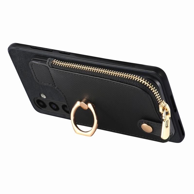 Για Samsung Galaxy A71 Cross Δερμάτινο δαχτυλίδι κάθετη φερμουάρ πορτοφόλι πίσω υπόθεση τηλεφώνου (μαύρο)