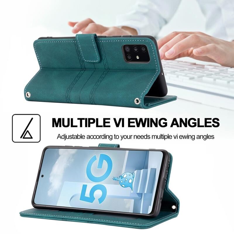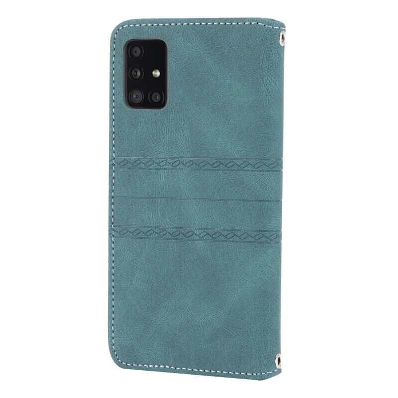 Για Samsung Galaxy A71 ανάγλυφη ριγέ μαγνητική πόρπη PU + TPU οριζόντια Flip δερμάτινη θήκη με θήκη & υποδοχή για κάρτες & πορτοφόλι & κορνίζα φωτογραφιών & σφεντόνα (πράσινο)
