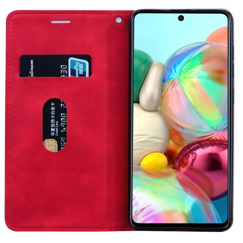Για Samsung Galaxy A71 Frosted Business μαγνητική οριζόντια Flip PU δέρμα υπόθεση με θήκη & υποδοχή για κάρτες & κορδόνι (Κόκκινο)