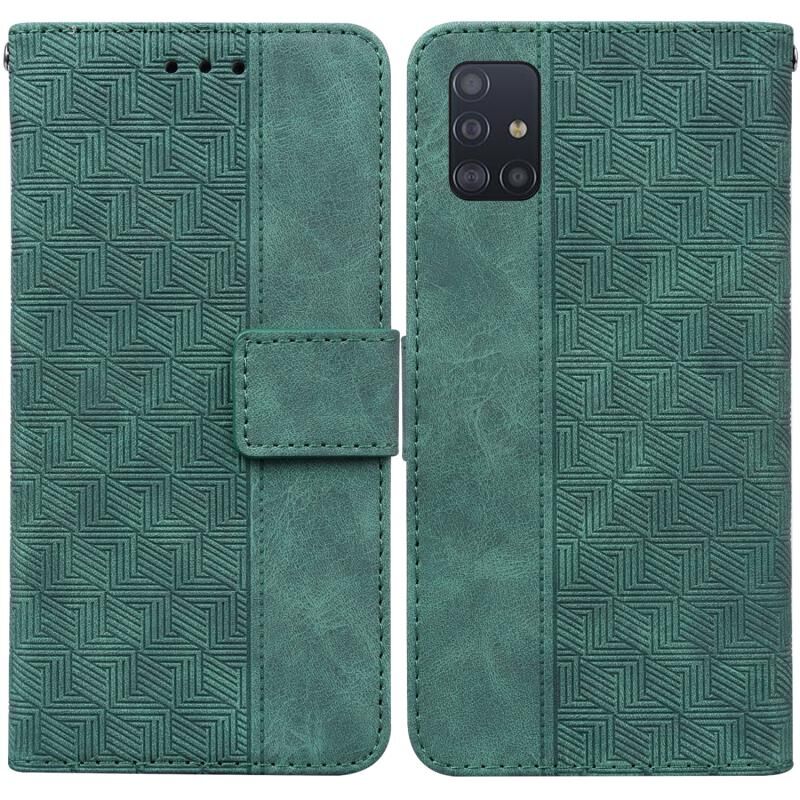 Για Samsung Galaxy A71 Γεωμετρική ανάγλυφη δερμάτινη θήκη τηλεφώνου (πράσινο)