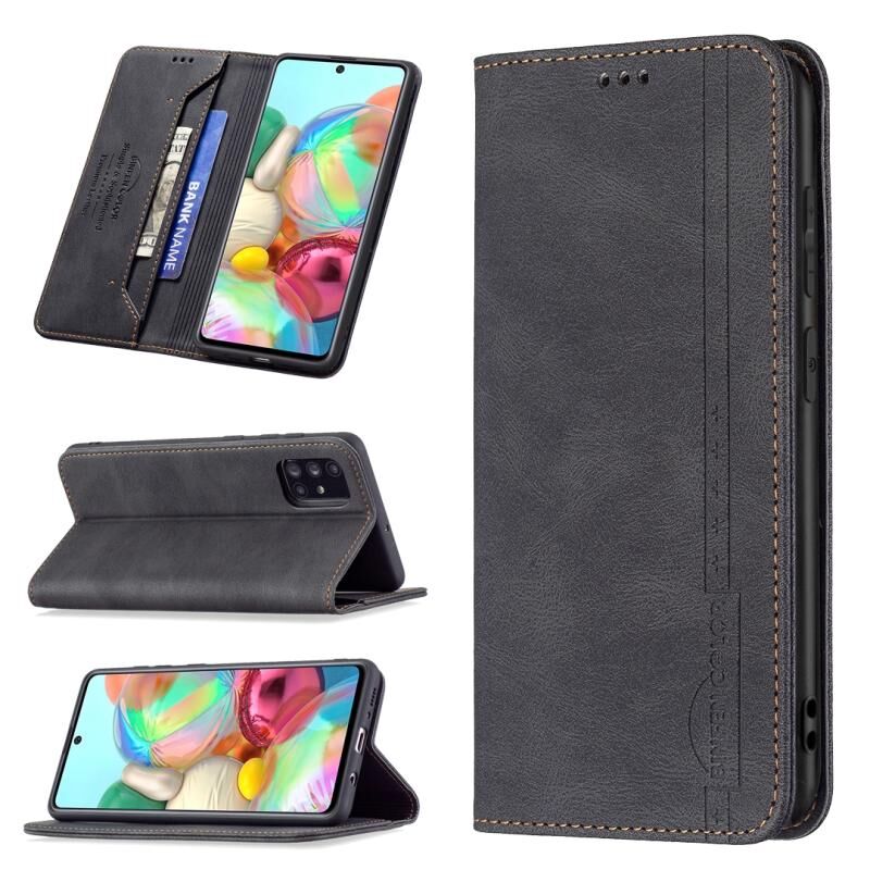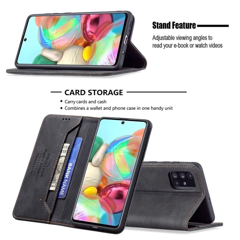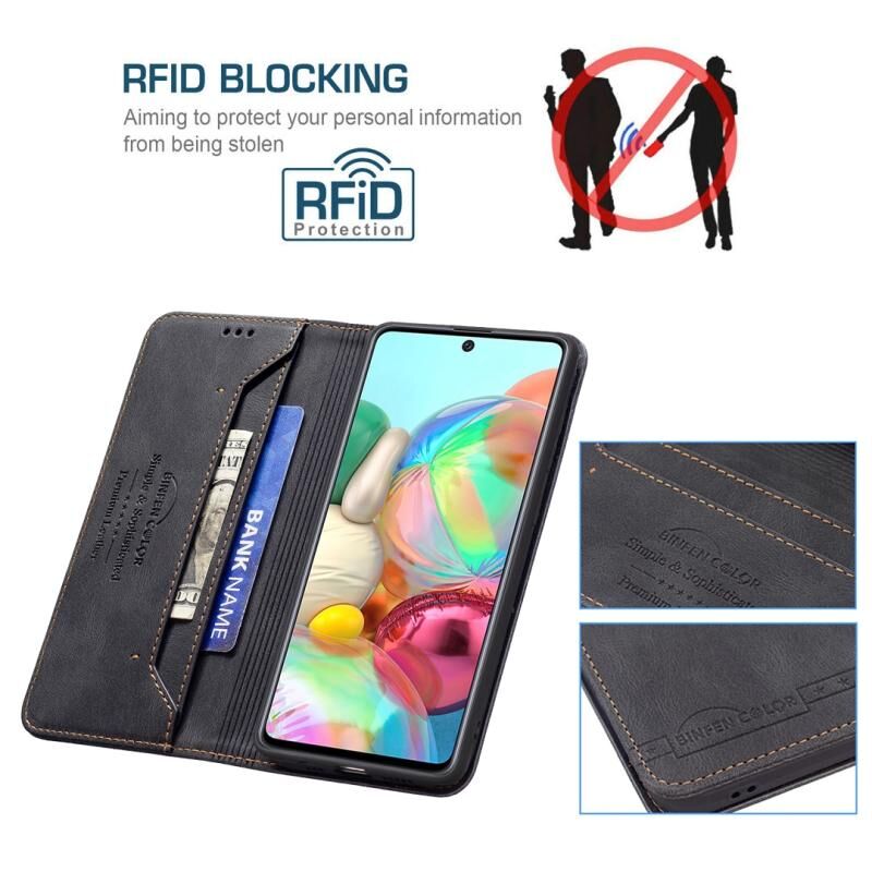 Για Samsung Galaxy A71 Μαγνητικό μπλοκάρισμα RFID Anti-Theft Δερμάτινη θήκη με θήκη & υποδοχές για κάρτες & πορτοφόλι (Μαύρο)