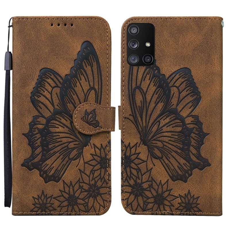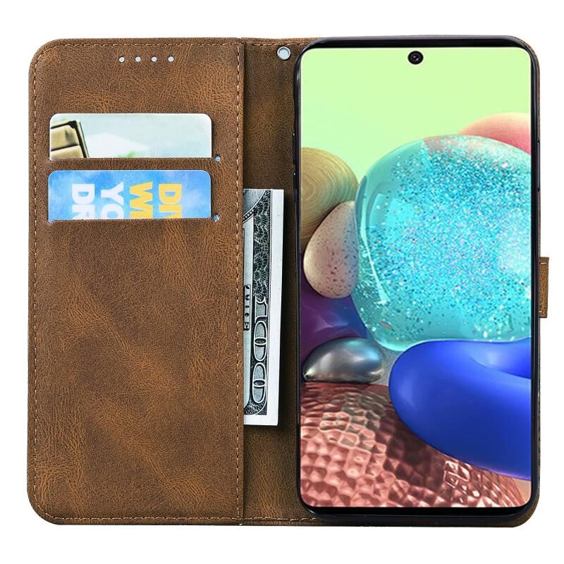 Θήκη Samsung Galaxy A71 Retro, Δερμάτινη, Οριζόντια, με Υφή, με ανάγλυφα σχέδια πεταλούδων, με βάση στήριξης & Θήκες για Κάρτες & Πορτοφόλι (Καφέ)