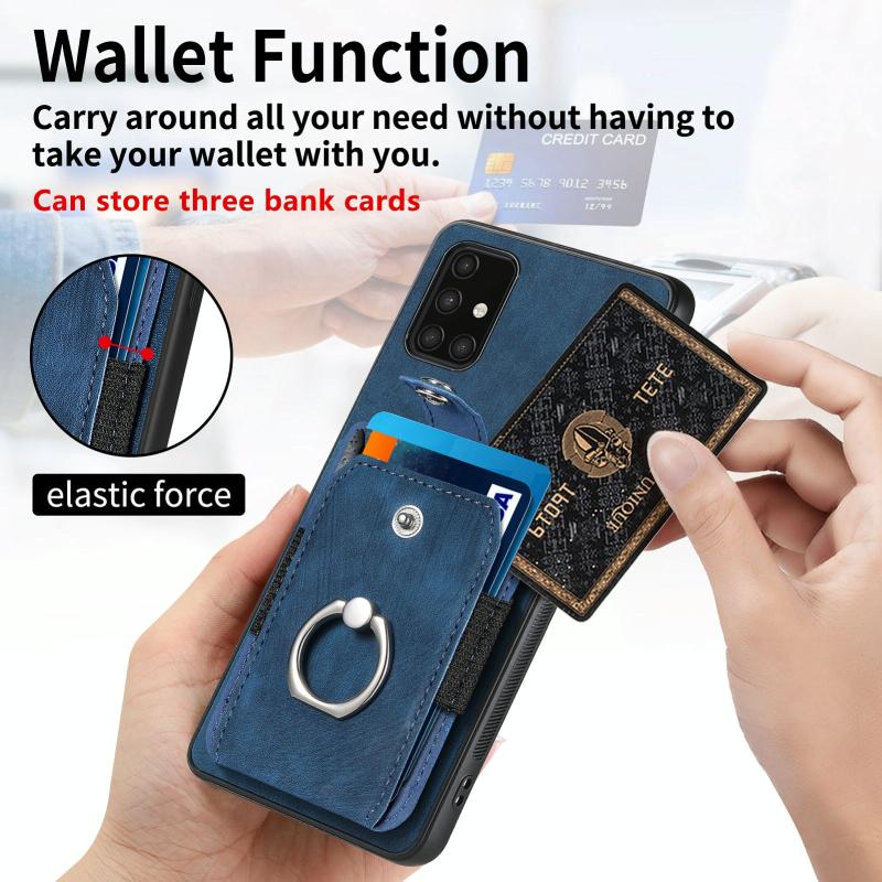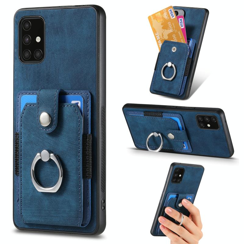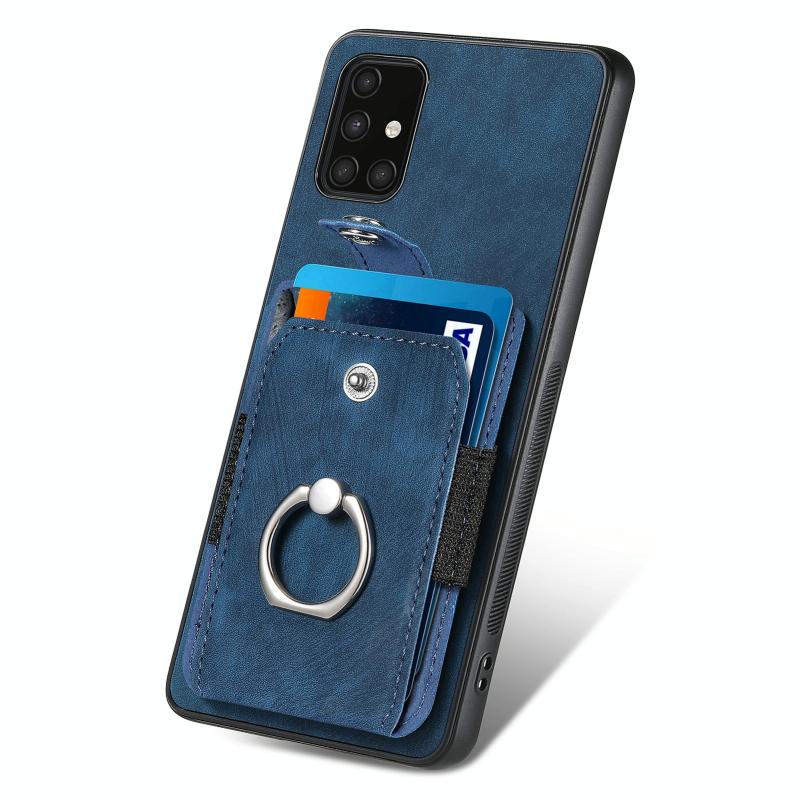 Θήκη κινητού τηλεφώνου Samsung Galaxy A71 με κάρτες και δακτύλιο, με ρετρό υφή (Καφέ)