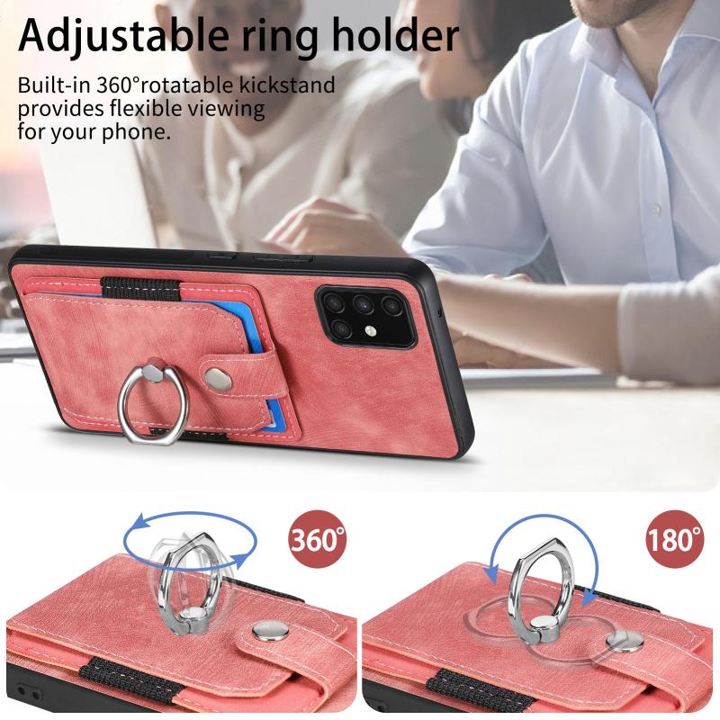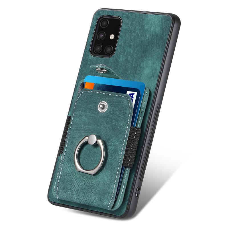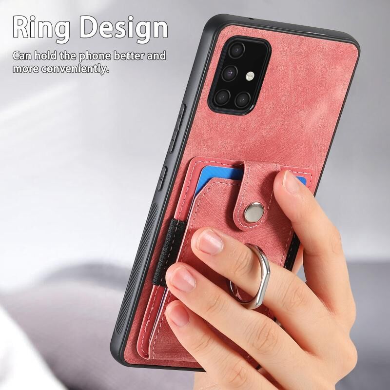 Θήκη κινητού τηλεφώνου Samsung Galaxy A71 με κάρτες και δακτύλιο, με ρετρό υφή (Καφέ)