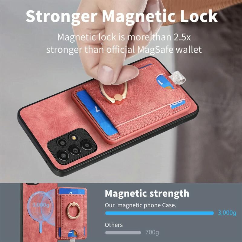 5. Το δερμάτινο πορτοφόλι διαθέτει ισχυρούς ενσωματωμένους μαγνήτες που του επιτρέπουν να κουμπώνει αβίαστα στη θέση του στο πίσω μέρος του τηλεφώνου σας, εύκολο στη χρήση και την αφαίρεση.