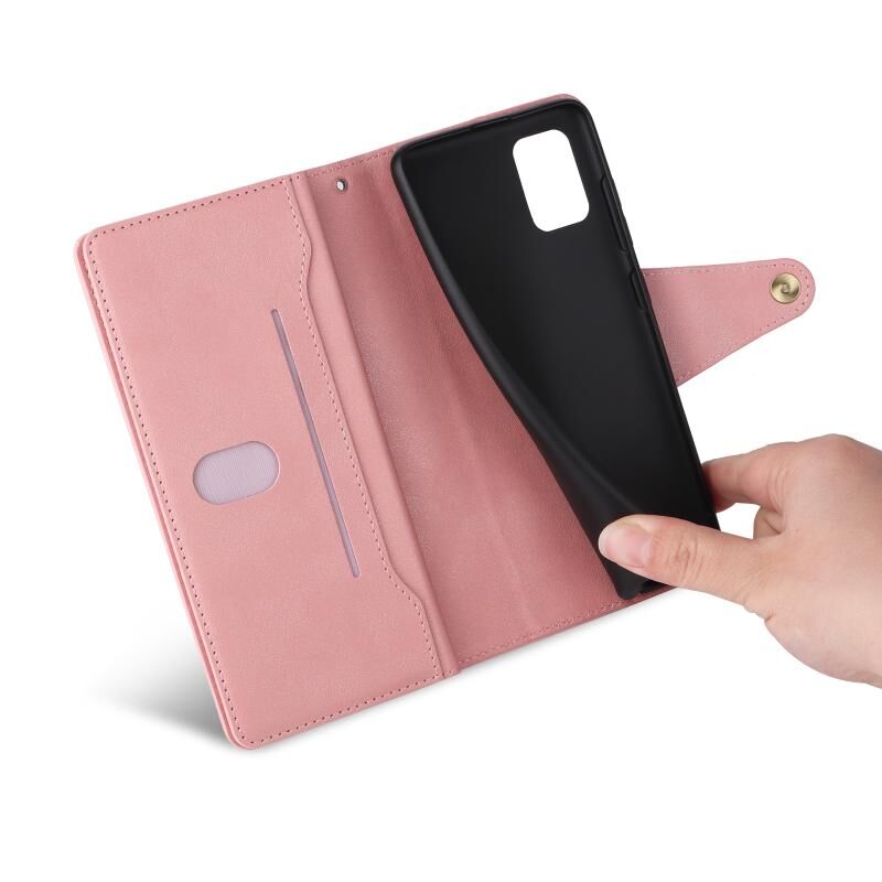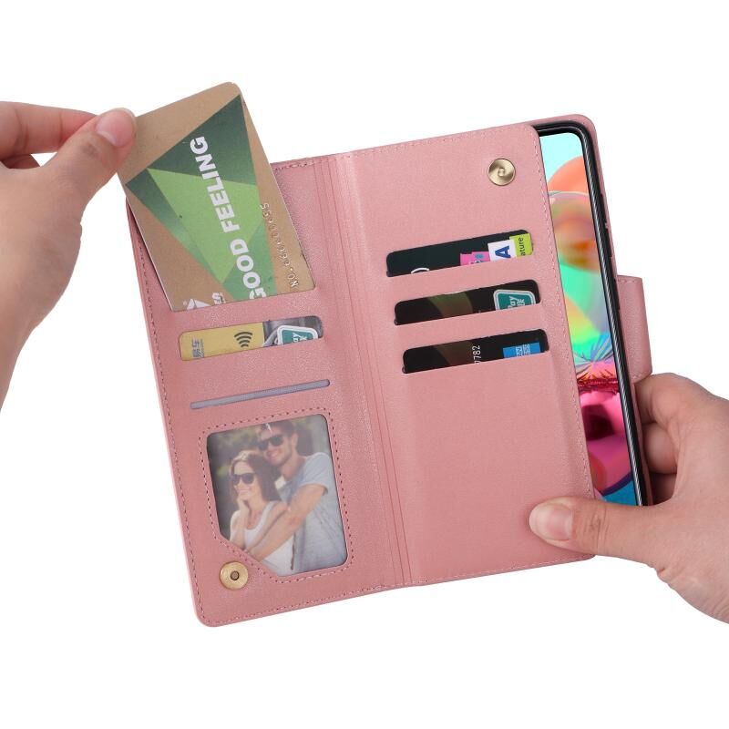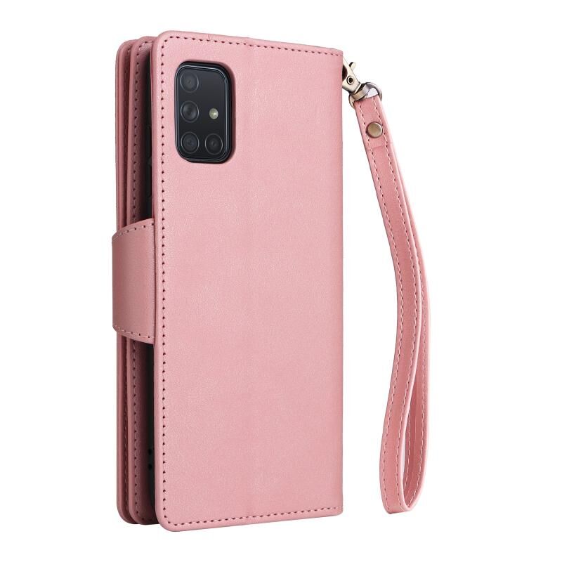Για Samsung Galaxy A71 Rivet πόρπη 9 κάρτες τρεις φορές δερμάτινη θήκη τηλεφώνου (Rose Gold)