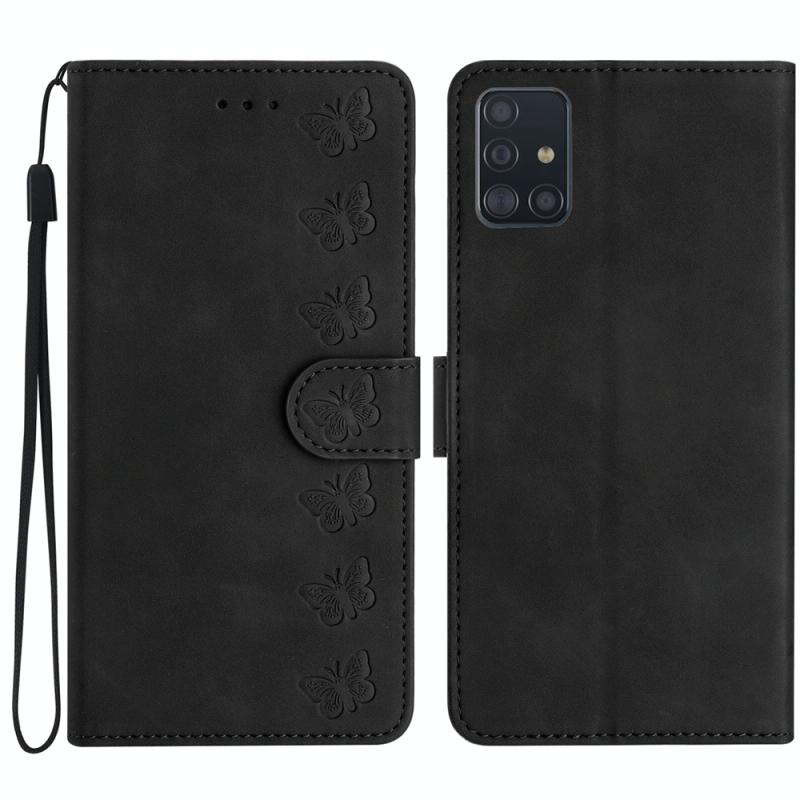 Θήκη τηλεφώνου Samsung Galaxy A71 Seven Butterflies Embossed Leather (Μαύρο)