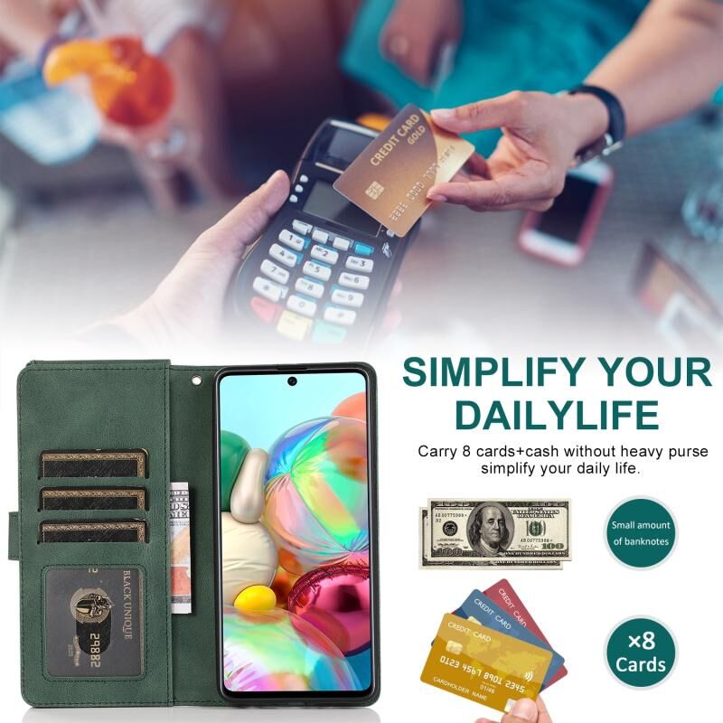 Για Samsung Galaxy A71 Skin-feel Crazy Horse υφή φερμουάρ τσάντα πορτοφόλι οριζόντια Flip δερμάτινη θήκη με κάτοχο & υποδοχές για κάρτες & πορτοφόλι & κορδόνι (σκούρο πράσινο)