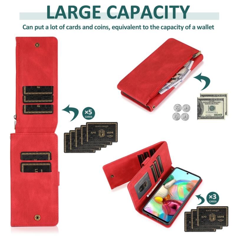 Για Samsung Galaxy A71 Skin-feel Crazy Horse υφή φερμουάρ τσάντα πορτοφόλι οριζόντια Flip δερμάτινη θήκη με κάτοχο & υποδοχές για κάρτες & πορτοφόλι & Lanyard (κόκκινο)