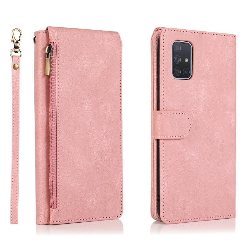 Για Samsung Galaxy A71 Skin-feel Crazy Horse υφή φερμουάρ πορτοφόλι τσάντα οριζόντια Flip δερμάτινη θήκη με κάτοχο & υποδοχές για κάρτες & πορτοφόλι & Lanyard (Rose Gold)