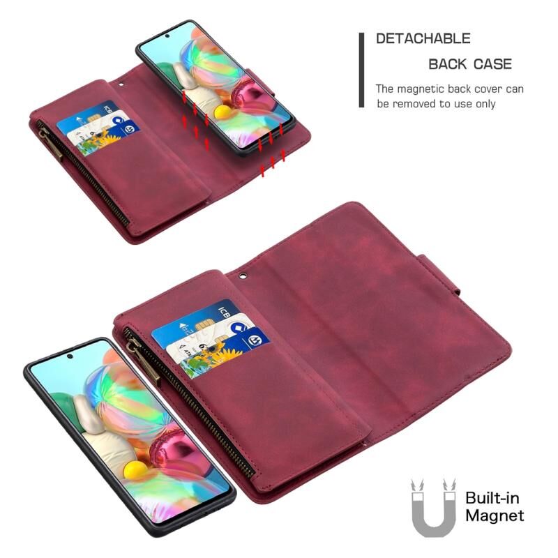 Για Samsung Galaxy A71 Skin Feel Αποσπώμενο μαγνητικό φερμουάρ Οριζόντια Flip PU δερμάτινη θήκη με υποδοχές για πολλαπλές κάρτες & θήκη & πορτοφόλι & κορνίζα & κορδόνι (κόκκινο)