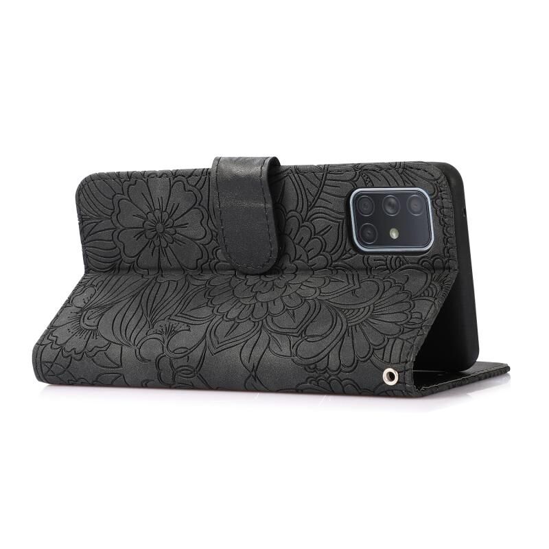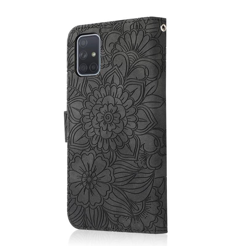 Για Samsung Galaxy A71 δέρμα αίσθηση ανάγλυφο ηλιοτρόπιο οριζόντια Flip δερμάτινη θήκη με υποδοχές για κάρτες & υποδοχές & πορτοφόλι & κορδόνι (μαύρο)