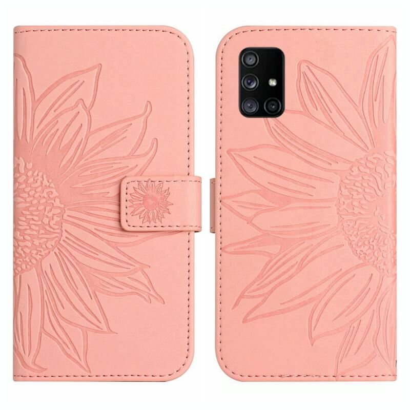 Για το Samsung Galaxy A71 δέρμα αίσθηση Sun Flower μοτίβο Flip δέρμα τηλέφωνο υπόθεση με κορδόνι (ροζ)
