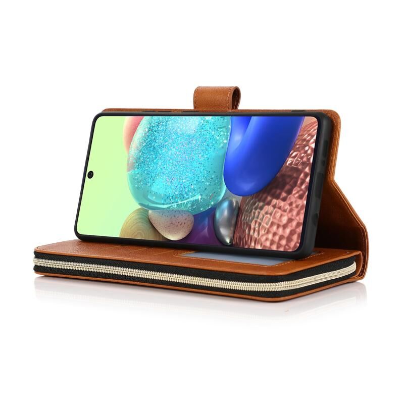 Για Samsung Galaxy A71 φερμουάρ τσάντα πορτοφόλι οριζόντια Flip PU δερμάτινη θήκη με κάτοχο & 9 υποδοχές για κάρτες & πορτοφόλι & κορδόνι & κορνίζα & πλαίσιο φωτογραφιών (καφέ)