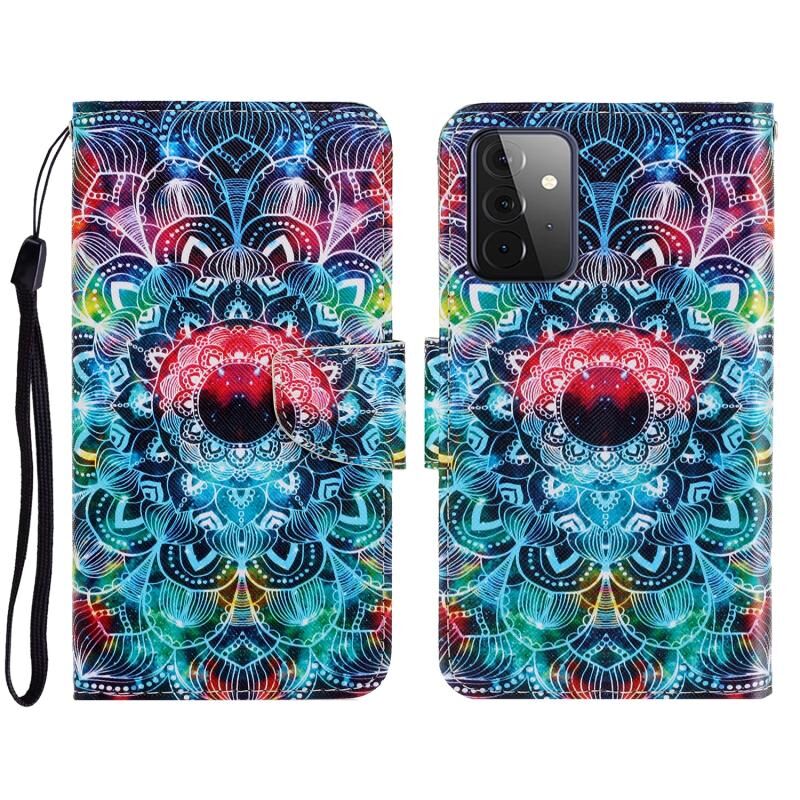 Θήκη τηλεφώνου Samsung Galaxy A72 3D με έγχρωμη σχεδίαση, οριζόντια αναδιπλούμενη από δέρμα με βάση στήριξης & θήκες για κάρτες & πορτοφόλι (Mandala)