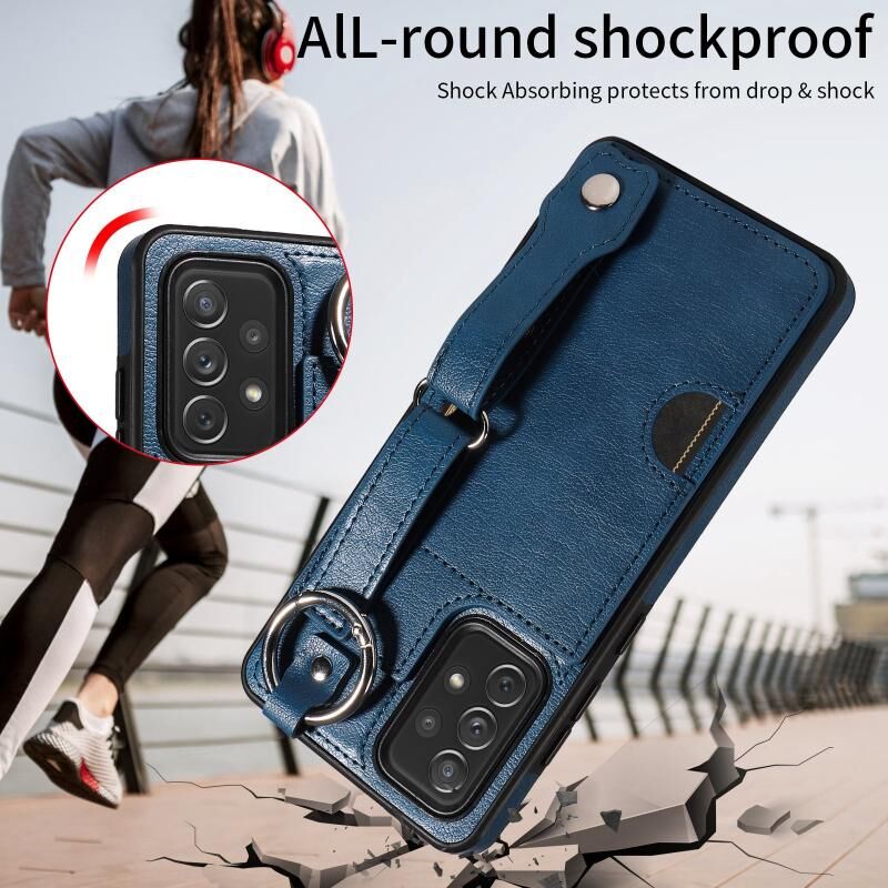 Για Samsung Galaxy A72 4G/5G Calf υφή καρπού κάρτα Slot Ring υπόθεση τηλεφώνου (Μπλε)