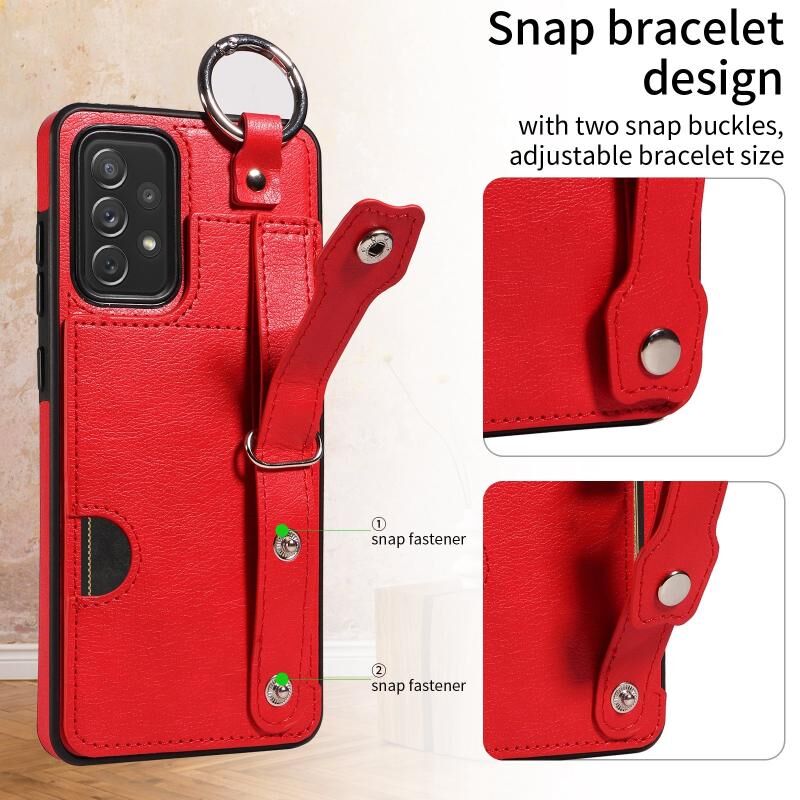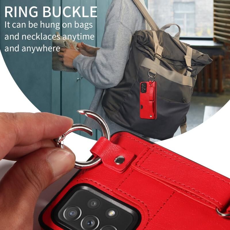 Για Samsung Galaxy A72 4G/5G Calf υφή καρπού κάρτα Slot Ring υπόθεση τηλεφώνου (Κόκκινο)
