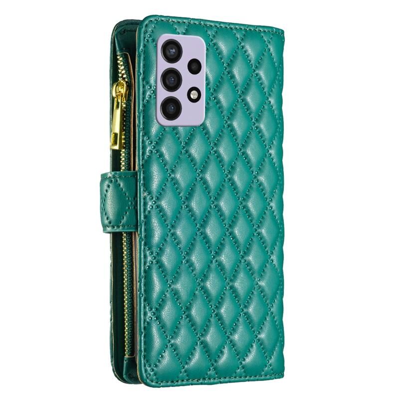 Θήκη τηλεφώνου Samsung Galaxy A72 4G / 5G, Δερμάτινη θήκη τύπου πορτοφολιού με φερμουάρ και σχέδιο διαμαντένιου πλέγματος (Λευκό)