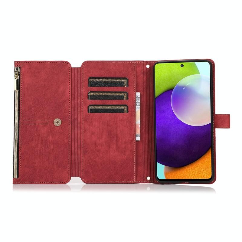 Για το Samsung Galaxy A72 4G / 5G Dream 9-Card πορτοφόλι φερμουάρ τσάντα δερμάτινη θήκη τηλεφώνου (Κόκκινο)