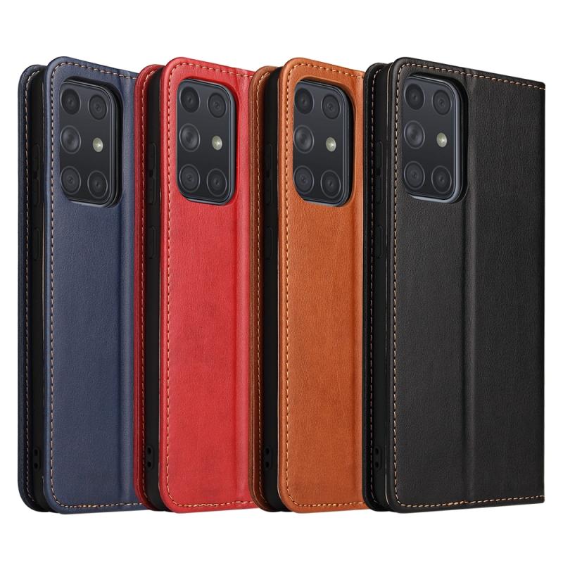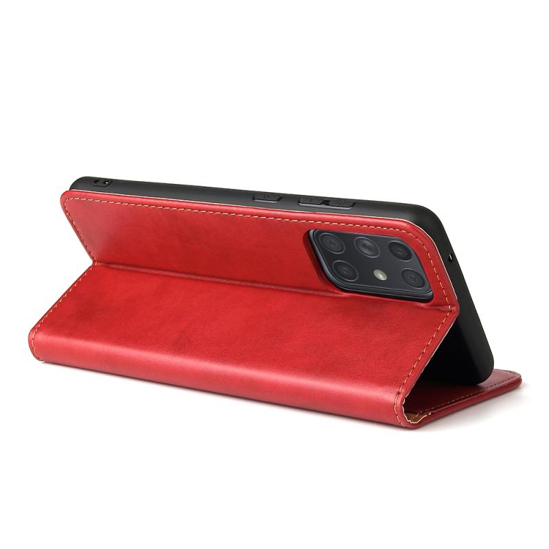 Θήκη δέρματος FIERRE SHANN για Samsung Galaxy A72 4G/5G, με οριζόντιο άνοιγμα, υφή γνήσιου δέρματος PU, με βάση & θήκες καρτών & πορτοφόλι (Μπλε) (Κόκκινο)