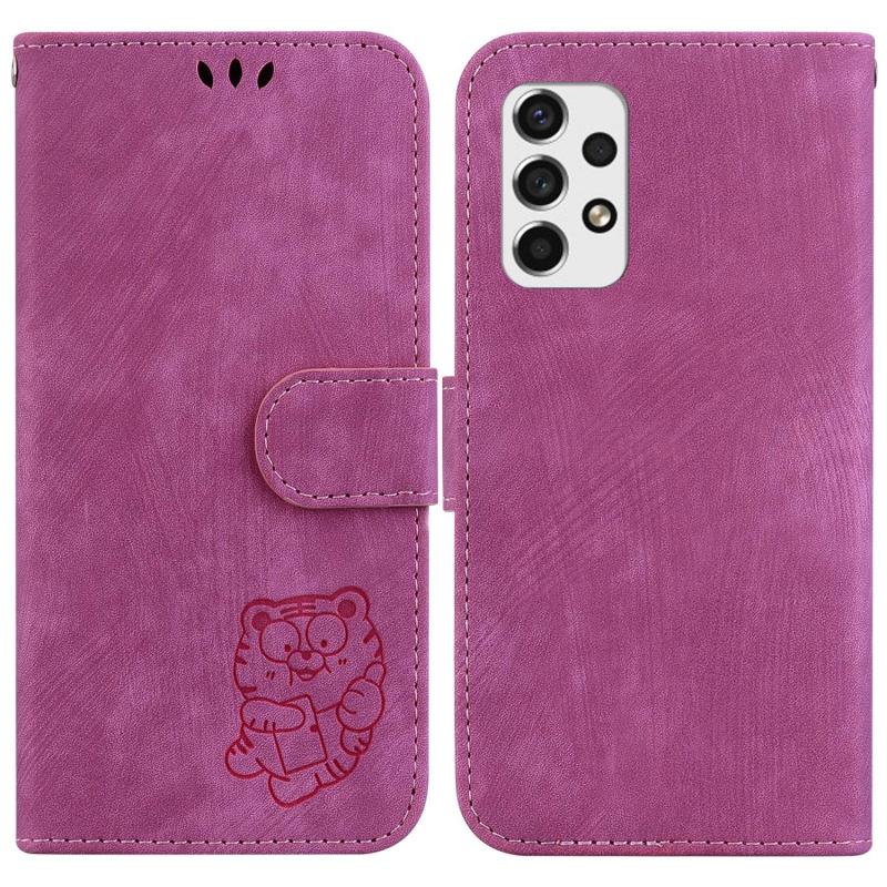 For Samsung Galaxy A72 4G / 5G Little Tiger Embossed Leather Phone Case(Rose Red)