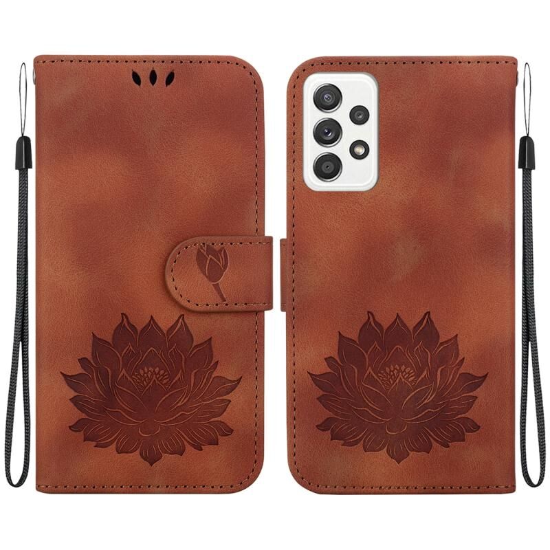 For Samsung Galaxy A72 4G / 5G Lotus Embossed Leather Phone Case(Brown)